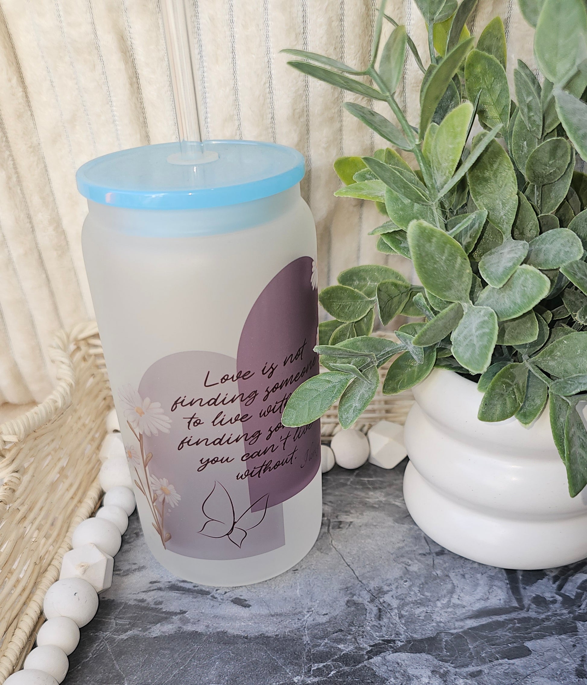 This glass can tumbler makes the perfect gift for anniversaries, weddings, or anyone you love deeply. Its soft matte look and clear design make it both chic and functional.